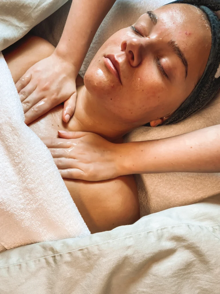 Aromavälkomnande, rengöring, Aha-syra, avslutande creme, ögoncreme och mineralfoundation ingår.